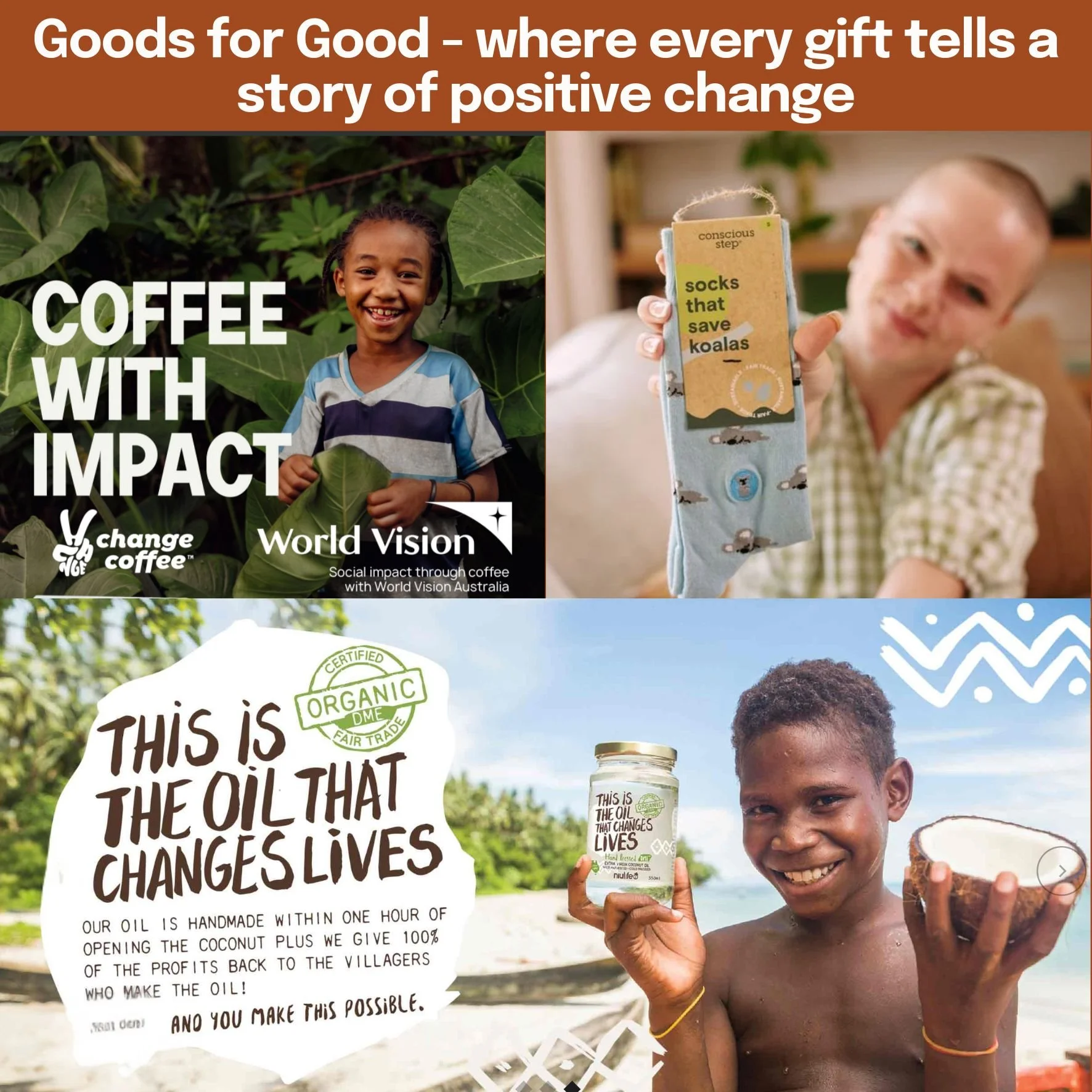 Goods 4 Good has over 500 gift products from Australian Social Enterprises and businesses for good. Gifts include gift vouchers, pantry items, greeting cards, wrapping paper, homeware, jewellery, body products, toys and more.